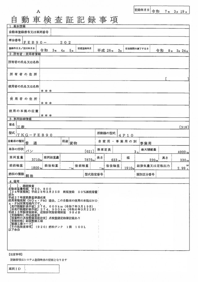 三菱 キャンター TKG-FEB90(未入力/関係無)