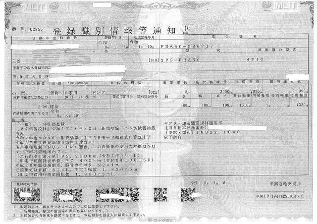 | 車検 | 抹消 |