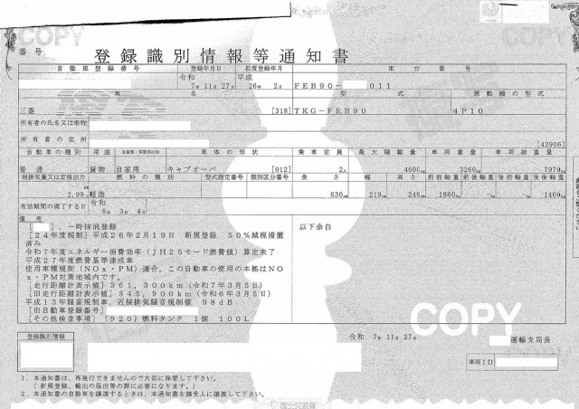| 車検 | 抹消 |