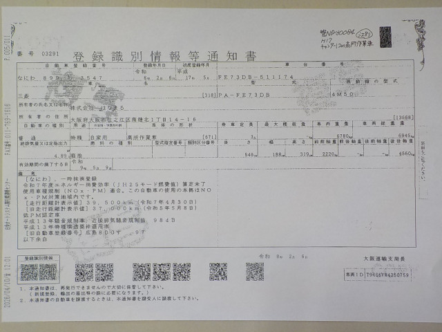 | 車検 | 抹消 |