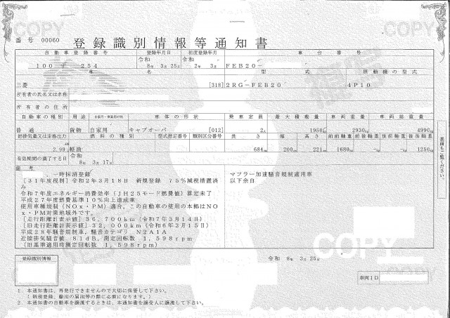 | 車検 | 抹消 |