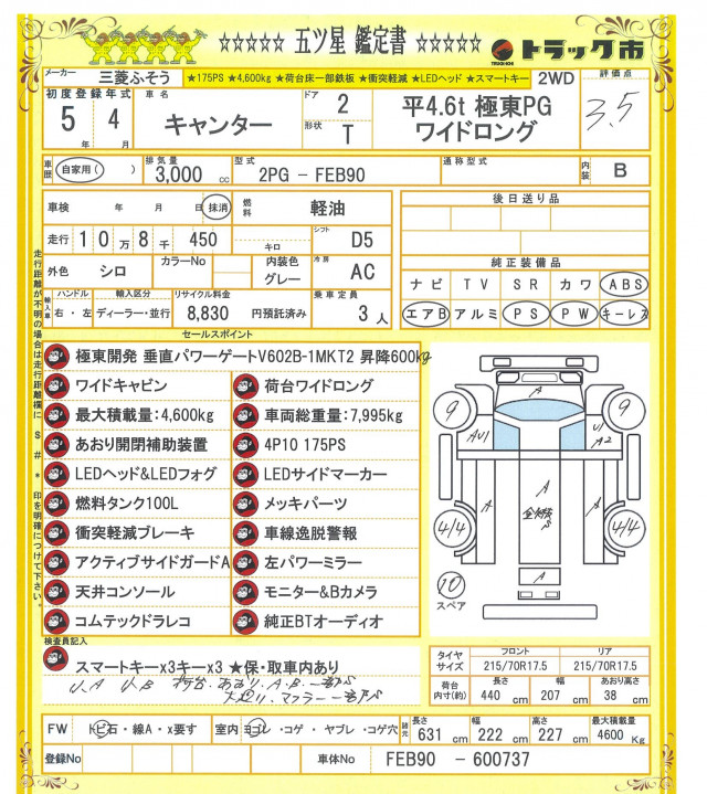 | 最大積載量 | 4,600(kg) |