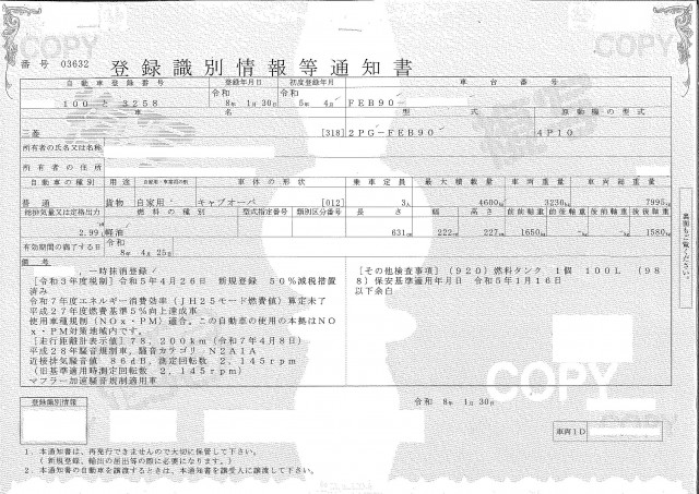 | 車検 | 抹消 |