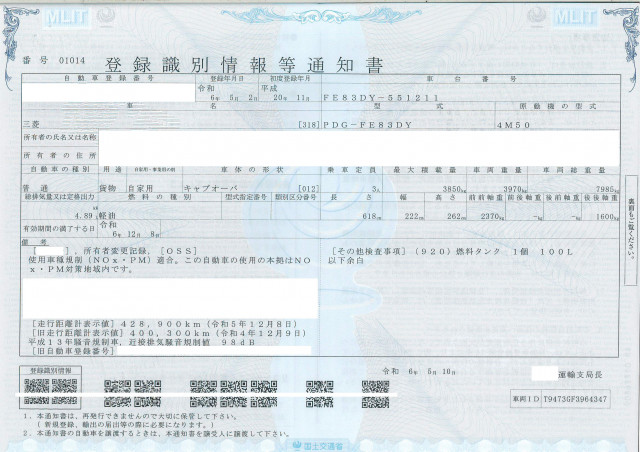 | 車検 | 抹消 |