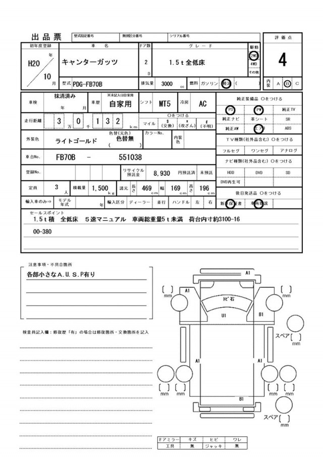 価格には保険料、税金(車両本体の消費税除)、リサイクル料金、リサイクル預託金相当額、登録、納車、陸送等に伴う費用等は含まれておりません。