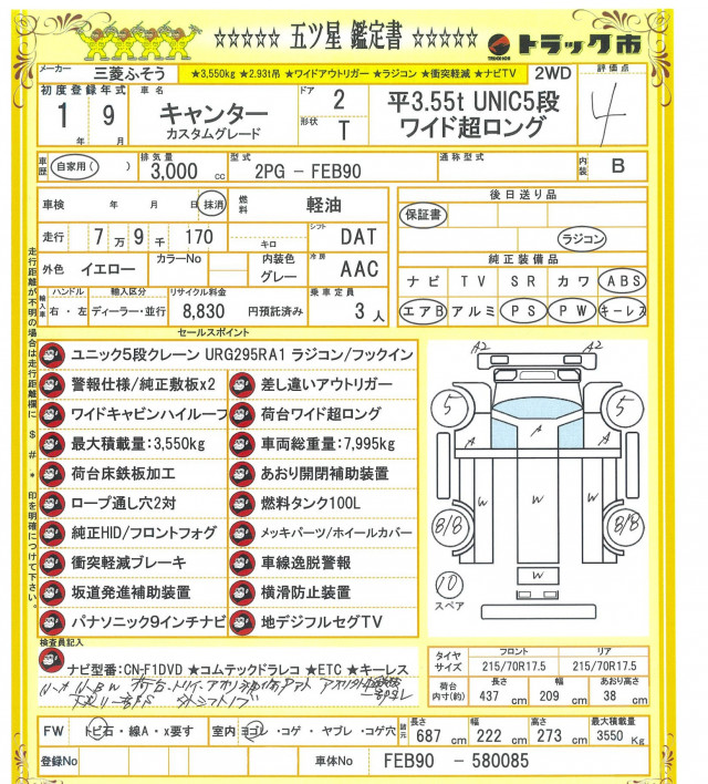 5段クレーン付き平ボディ☆ワイド超ロング☆カスタムグレード☆ラジコン☆フックイン☆差し違いアウトリガー☆ハイルーフ☆荷台床鉄板加工☆あおり開閉補助装置☆ロープ通し穴2対☆衝突被害軽減ブレーキ☆車線逸脱警報☆ドラレコ☆ETC☆ナビ・TV☆AT