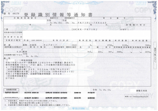| 車検 | 抹消 |