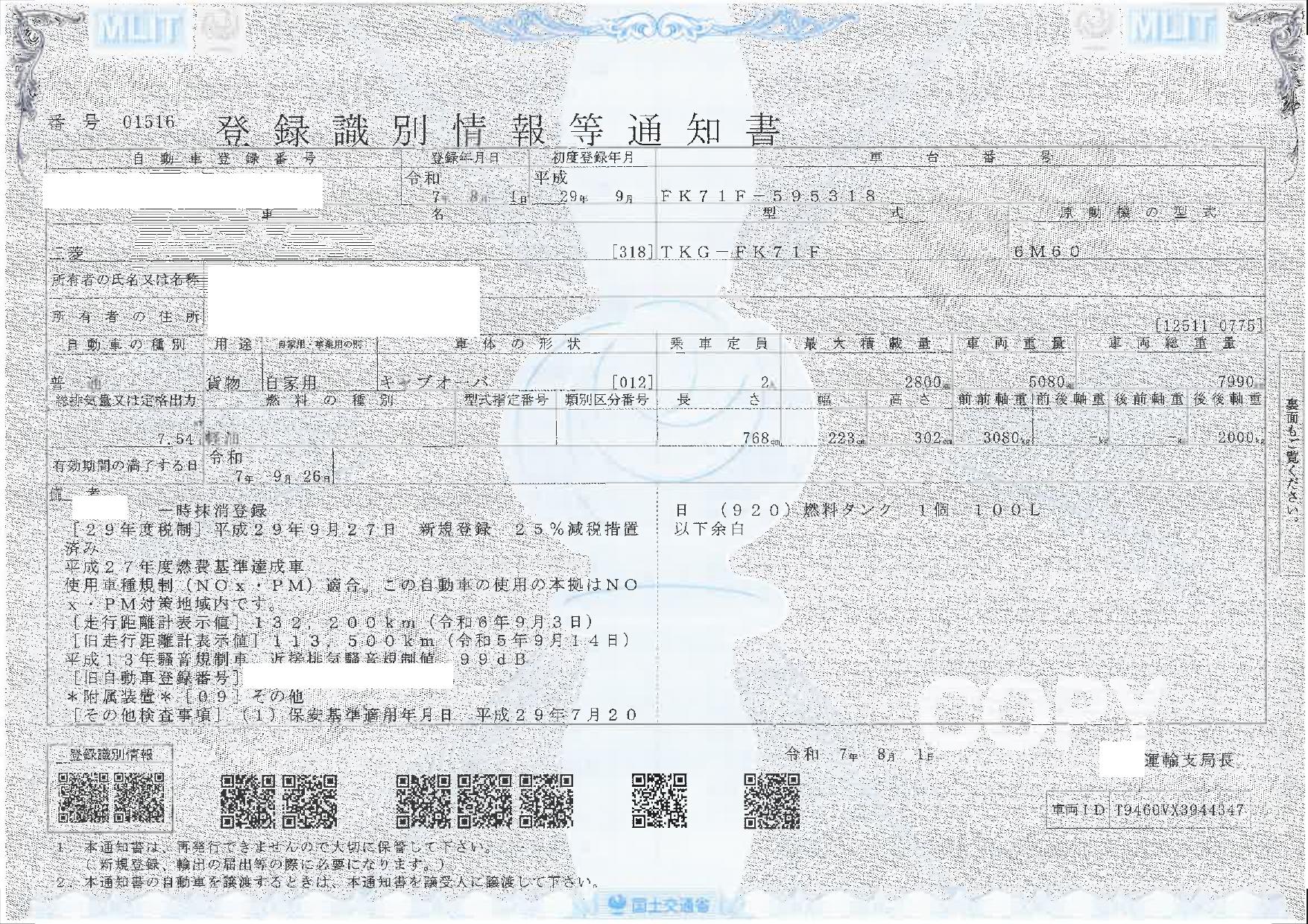 ※抹消車両は、登録時最大積載量が減トンされる可能性が御座います。