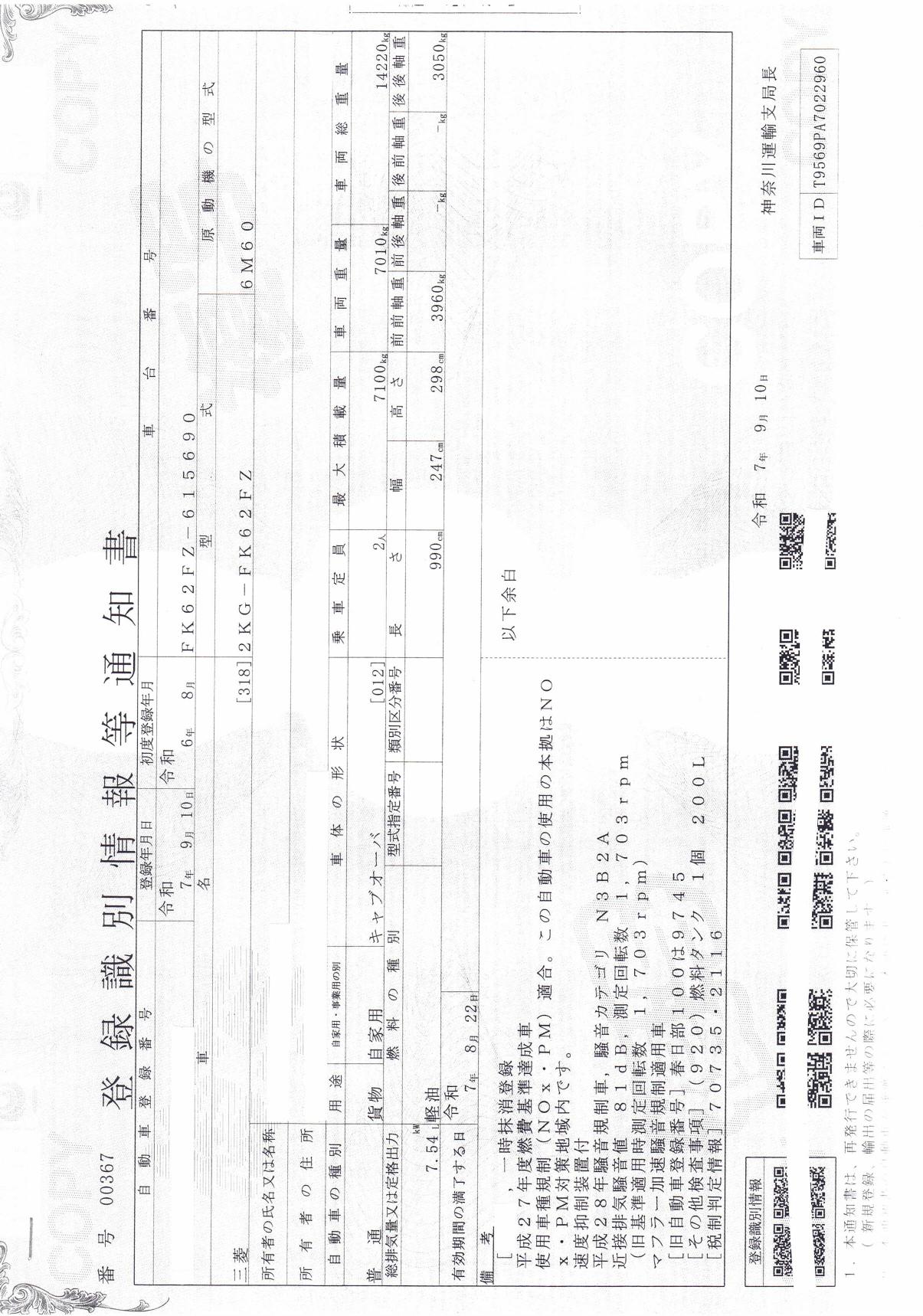 | 車検 | 抹消 |