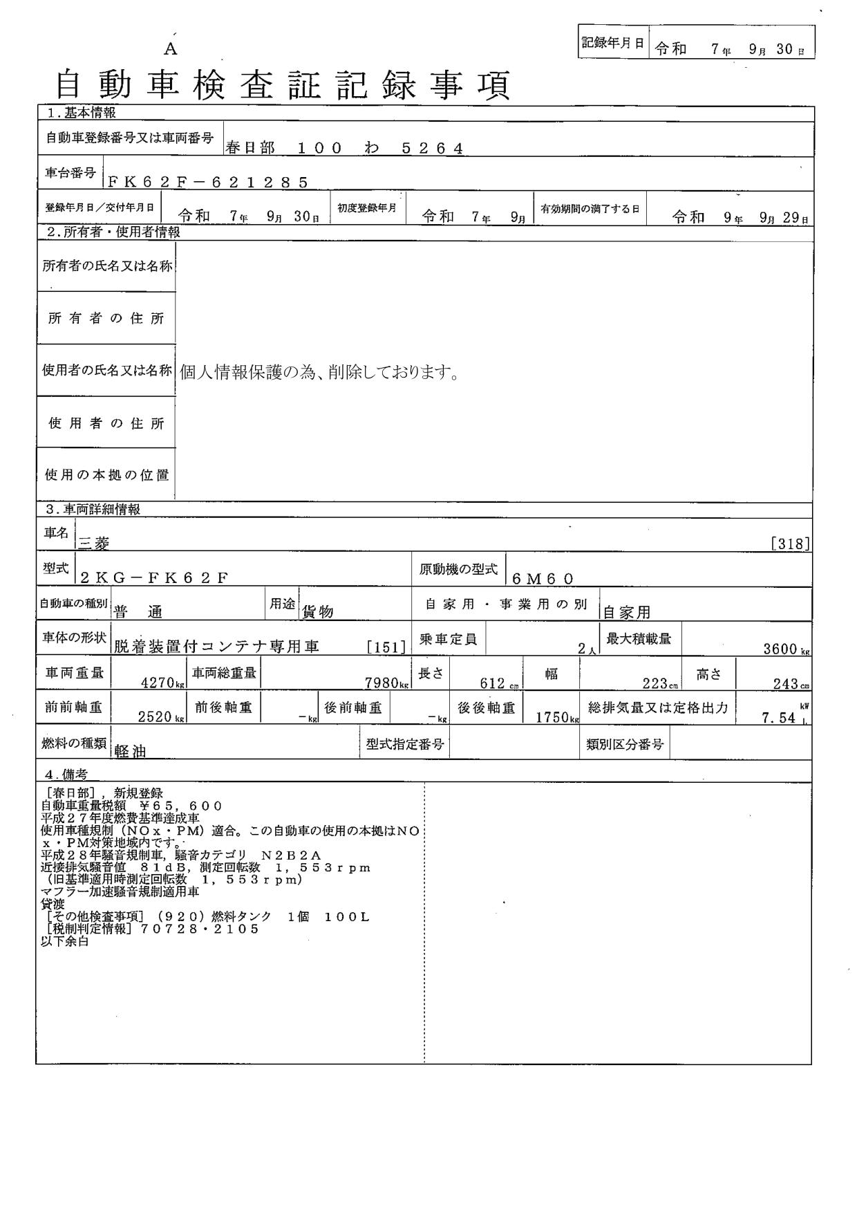 | 型式 | 2KG-FK62F |