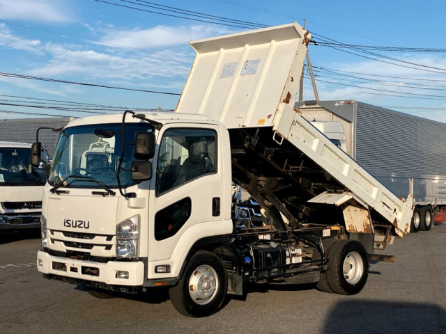 深ダンプ ベッド付 電動コボレーン 荷台内側ステンレス製 リヤ下開き バックアイカメラ 土砂禁 ドライブレコーダー 新免許中型 GVW11t未満 坂道発進補助 尿素 Sリミッタ *各所キズサビあり コボレーンシート一部破れ ミッション,デフ,フレームサビ小