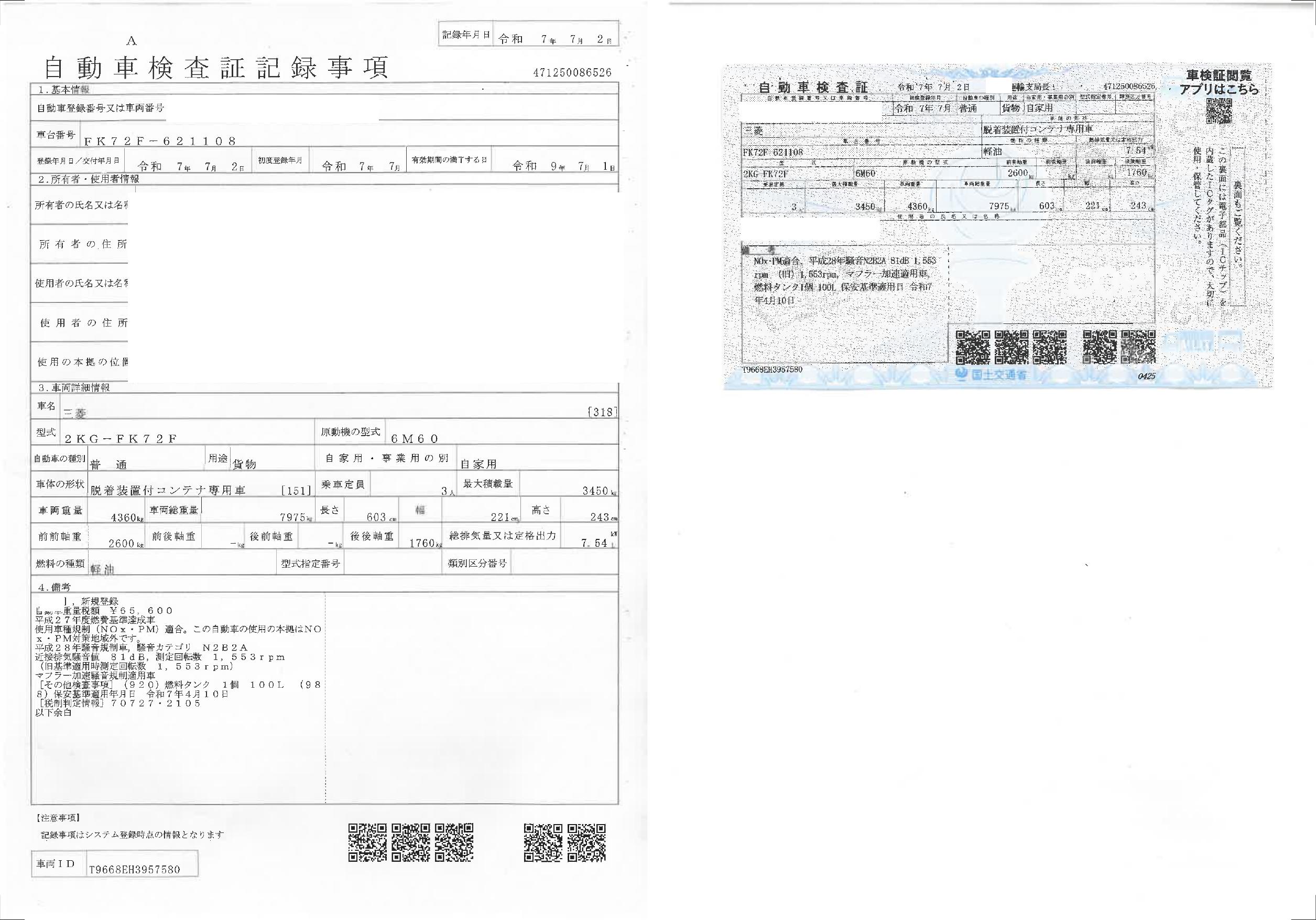 ※抹消車両は、登録時最大積載量が減トンされる可能性が御座います。