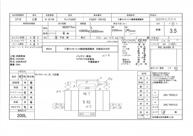 | サイズFF | 255/70R22.5 |