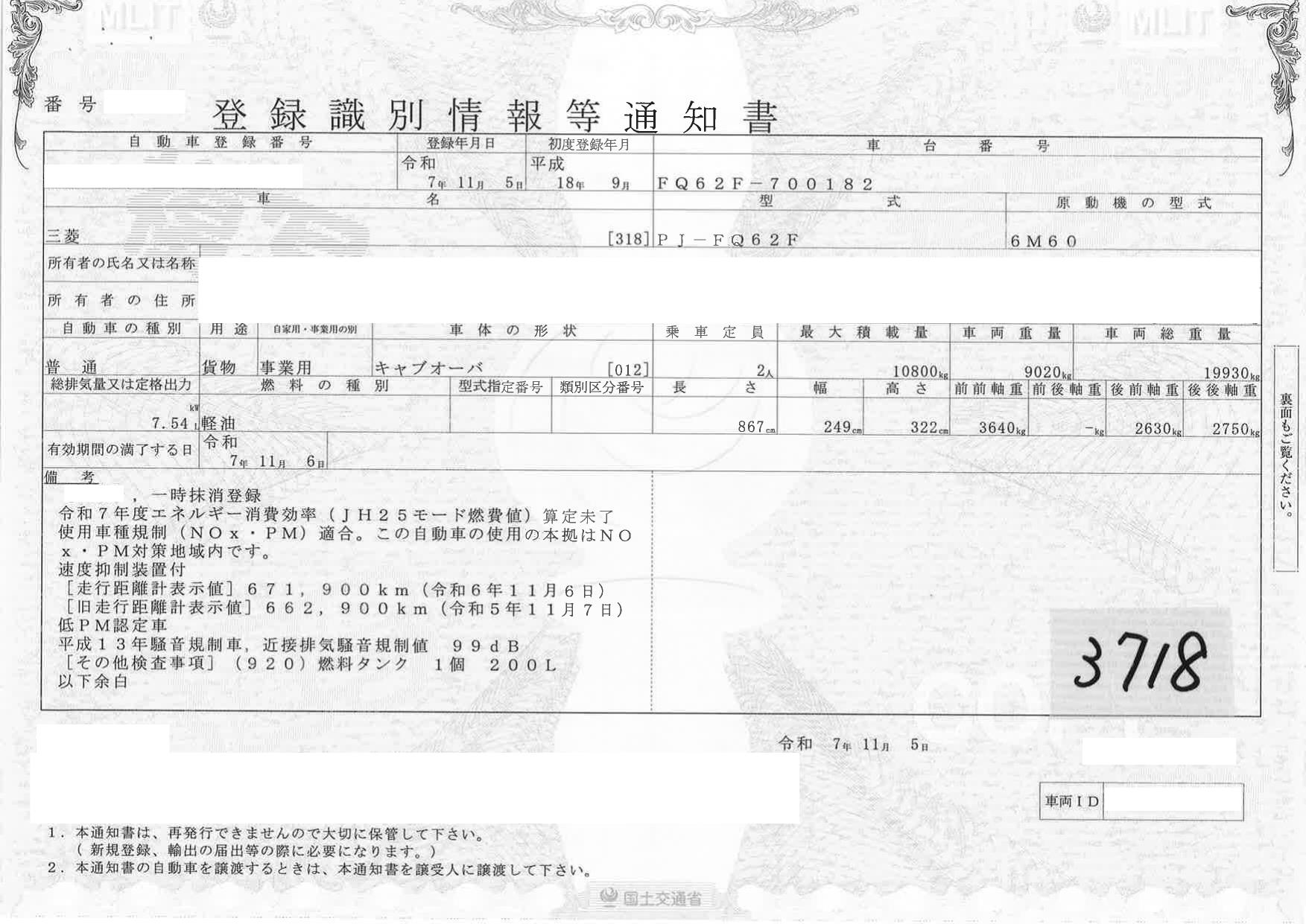 | 車検 | 抹消 |