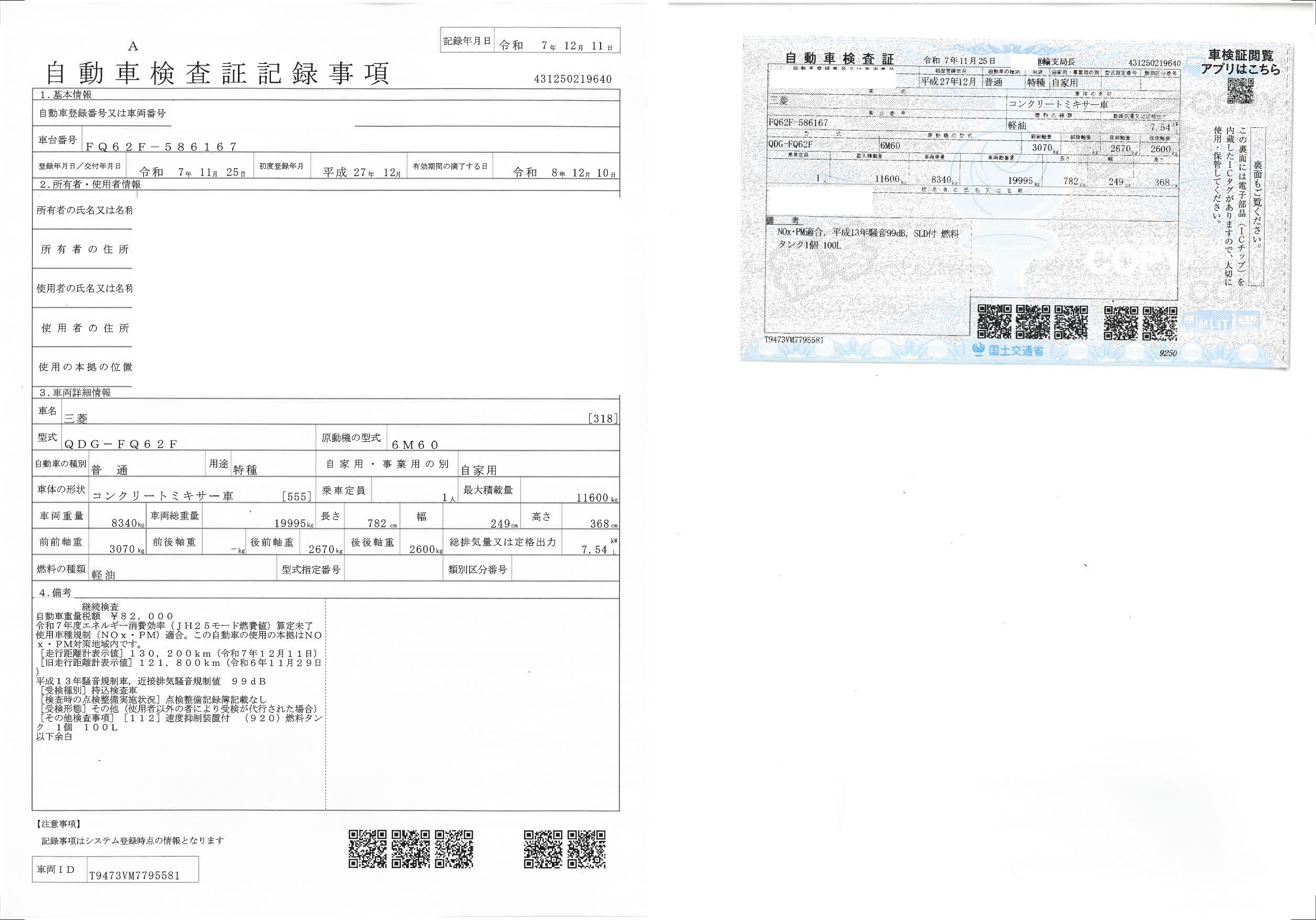 | 走行距離 | 130,219(km) |