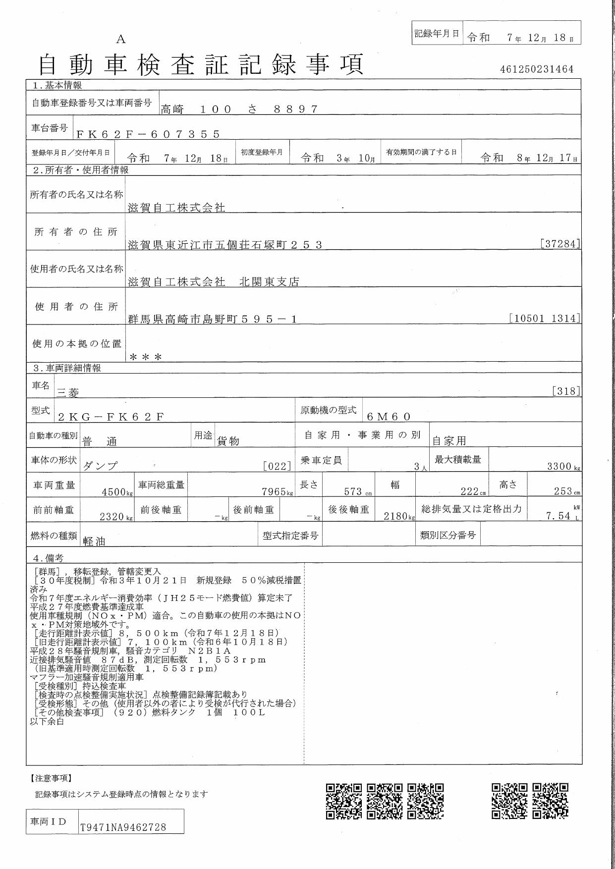 | 会社名 | 滋賀自工㈱北関東支店 |