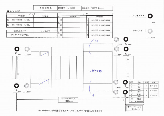 ▲車両外装:屋外保管によるキズ・サビ小程度あり ※スペアタイヤなし。キャリアもついてません。