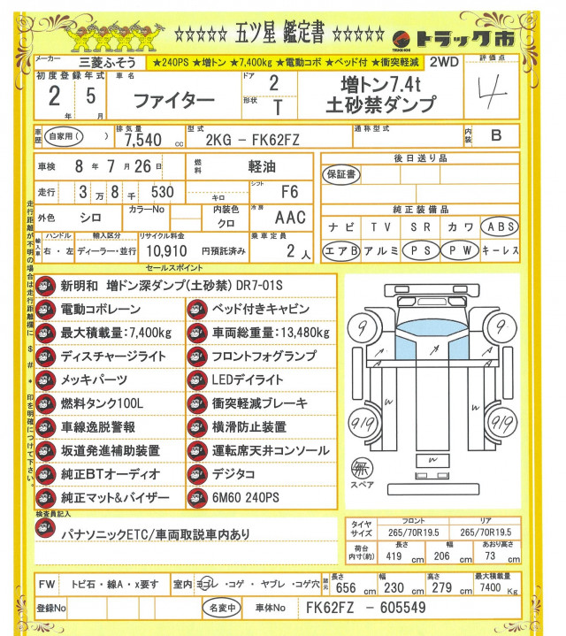 ☆新明和☆深ダンプ(土砂禁)☆増t☆電動コボレーン☆ベッド付☆ディスチャージライト☆メッキパーツ☆LEDデイライト☆衝突軽減ブレーキ☆坂道発進補助装置☆車線逸脱警報装置☆横滑防止装置☆純正Bluetoothオーディオ☆デジタコ☆ETC☆取説☆純正マット&バイザー☆
