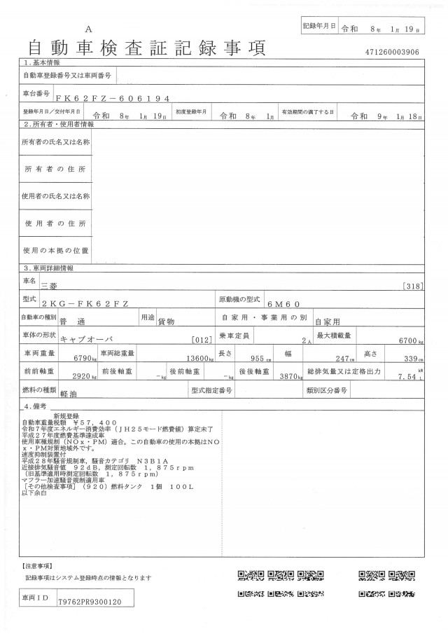 | 型式 | 2KG-FK62FZ |