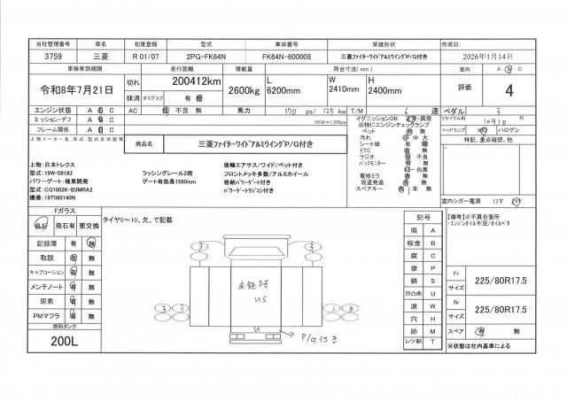 | サイズFF | 225/80R17.5 |