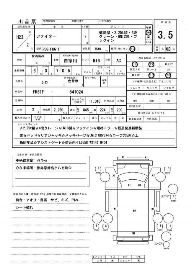 荷台・アオリ・鳥居 サビ、キズ、凹み・シート破れ