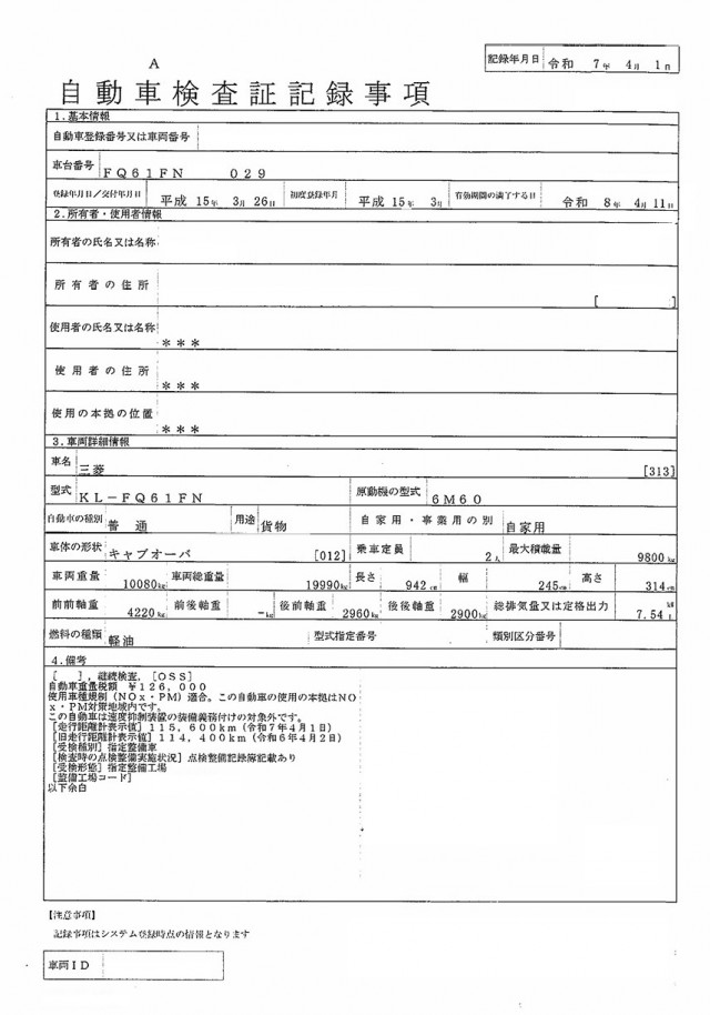 | 走行距離 | 116,575(km) |