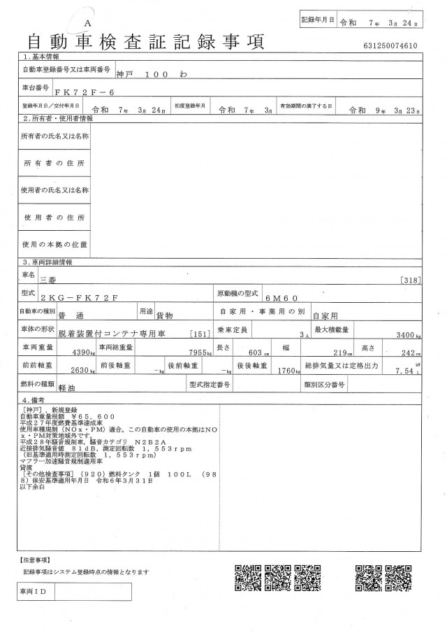 | 型式 | 2KG-FK72F |