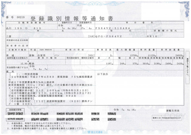 | 車検 | 抹消 |