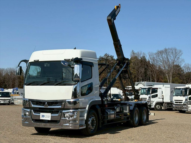 ★車検付★ 三菱ふそうスーパーグレート 10.1t脱着装置付コンテナ専用車 極東開発製 型式:JM10-53 ツインホイスト 380馬力 3軸2デフ 可動式バンパー 電動コボレーン電源有 坂道発進補助装置 タコグラフ