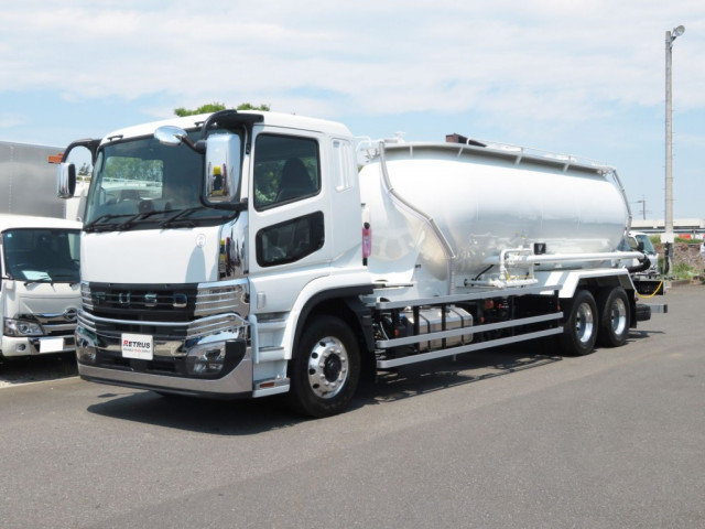 未使用・25tベース・シフトパイロット・381馬力の粉粒体運搬車が入庫いたしました! 上物は極東製の1層式で容積15立米、積載物はバラセメントで計上しており比重1として積載15tになります。 新顔のスーパーグレードでフロントはメッキで飾っておりアルミホイールも履いている見た目も整った車両です。 新車納期はかなりかかっている現状ですので是非この機会にお問い合わせください!