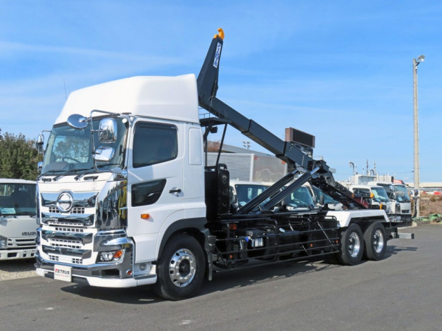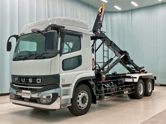 未使用・新顔・22t・2デフ・ハイルーフの極東製フックロールが入荷いたしました! ミッションはシフトパイロットでエンジンは新エンジン6R30の394馬力、積載は10,300㎏とれております。 キャブバックデッキに加えて、キャビン内にはコンテナ脱着用の液晶モニターが付いていますので安全に作業可能です!新車ですと納期がかかる中、名義変更のみで使用できる即戦力の車両です。 ぜひこの機会にお問い合わせください!!