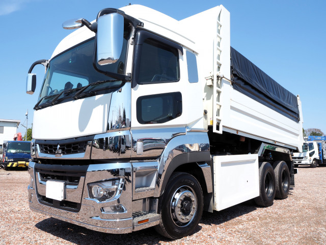 25tベース・三菱新顔・土砂禁ダンプが入荷いたしました! エンジンは394馬力で、ミッションはシフトパイロット・2ペダルです。 荷台内寸は(L=8.70m、W=2.30m、H=1.50m)、31立米で積載量は11,200㎏とれております。 リヤゲートは片開式でキャブメッキ付き・リヤフェンダーステン・総輪アルミホイール装着です。 キャビンはスーパーハイルーフ仕様・ETC・タコグラフ・バックカメラ付きと長距離運転にも優しい一台です。 是非この機会にお問い合わせください!