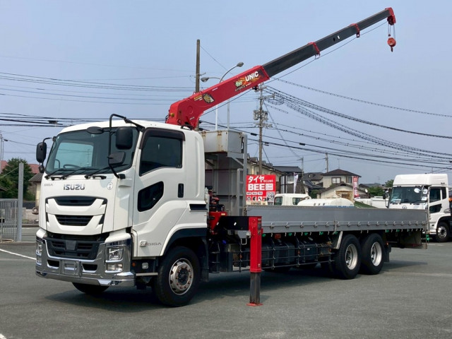 三菱・未使用・4軸低床・アルミブロックの簡易クレーン付が入庫いたしました。 クレーンはユニック製、4段ラジコン・2.93t吊・フックイン付きです。 荷台寸法はL=8.84m W=2.39m H=0.78m、積載は12,800kgです。 R5年式の未使用車ですので、他の未使用車と比べお手頃価格です! 是非お問い合わせ下さい。