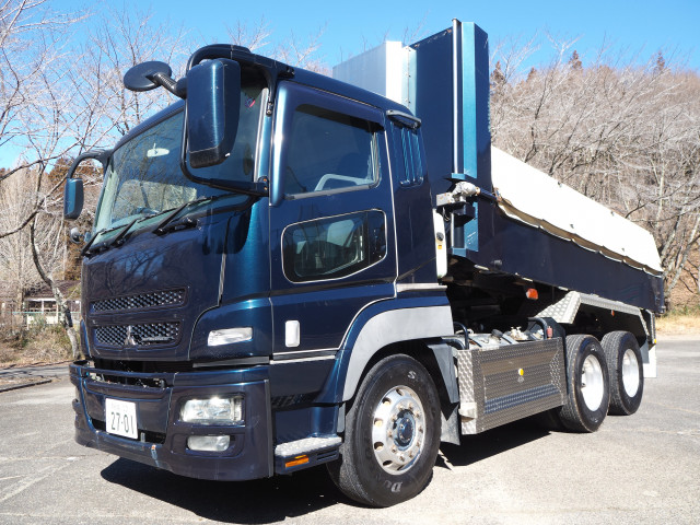未使用・新顔・23.9立米の土砂禁ダンプが入荷いたしました! ミッションはシフトパイロット・2ペダルでエンジンは421馬力の高馬力です。 荷台内寸は(L=6.50m、W=2.30m、H=1.60m)で積載量は9,200㎏とれております。 キャビン内はスーパーハイルーフなので長距離運転にも最適な一台です。 アルミホイールを装着済みの為錆びにくく、積載量もしっかりととれております! 是非この機会にお問い合わせください!