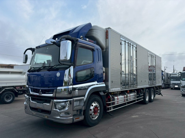 菱重製-35℃仕様のサブエンジン式・スタンバイ付き3軸1デフ冷凍バンです。 床形状はアルミ製 I 型キーストンで内寸(L=9.45m W=2.27m H=2.29m) ラッシングレールが2対・ジョロダーレールが4列ついております。 断熱材の厚みは前・天井・床100mm、横・横扉・後扉75mmです。 後輪エアサスと荷物に優しく、観音横扉も2つ付いており為荷物を載せる作業効率がアップいたします! スーパーハイルーフと室内も広く、車検も令和8年3月までついております!