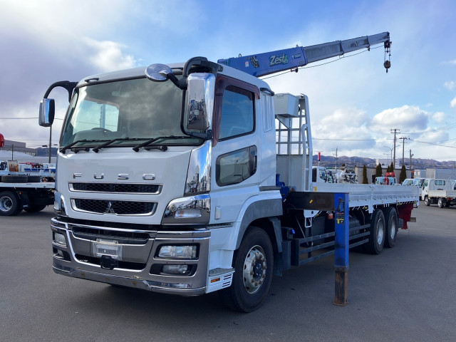 新型・未使用・25tベースの簡易クレーン付が入荷いたしました。 ミッションはシフトパイロット・2ペダルでエンジンは394馬力です。 荷台内寸は(L=8.74m、W=2.35m、H=0.78m)で積載量は12,200㎏です。 ボディーはリトラスで製作しており、鳥居には工具箱がついており、サイドバンパー・リヤフェンダーはステンレスを使用しているこだわった一台です。 また、クレーンはタダノ製・4段ブーム・ラジコン付きの仕様です。ぜひこの機会にお問い合わせください。