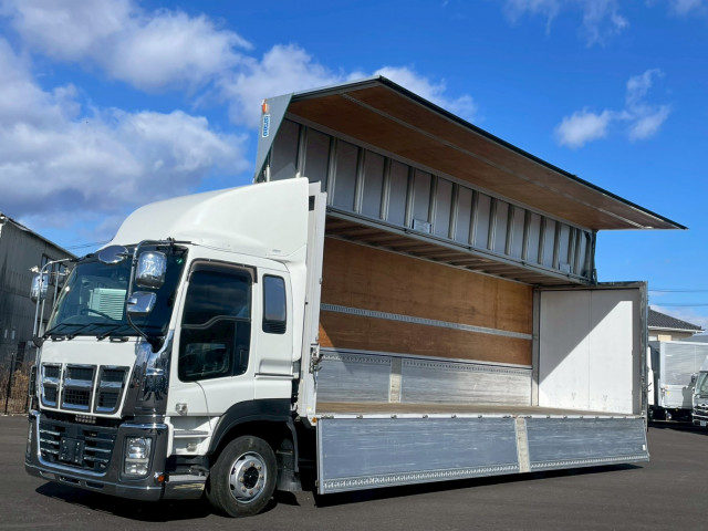 日本トレクス 製造番号/25W-05027 融雪仕様 床/板張り ラッシングレール/2段 引出しフック/9対 工具箱 スーパーハイルーフ リヤエアサス バックアイカメラ/FUSO メッキパーツ 未使用車