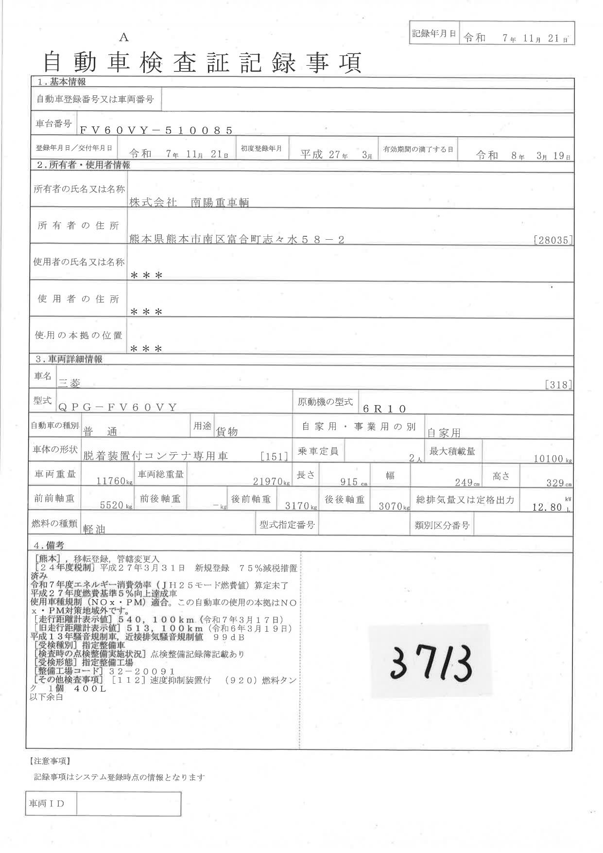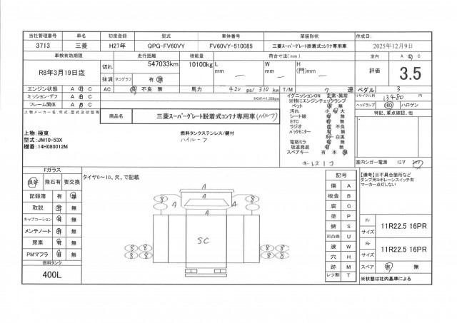 ★車検付★ 三菱ふそうスーパーグレート 10.1t脱着式コンテナ専用車 極東開発製 型式:JM10-53X 積載10100kg ハイルーフ 燃料タンクステンレス 420馬力 ETC 坂道発進補助装置 ベッド キーレス シフト7速MT 3軸2デフ
