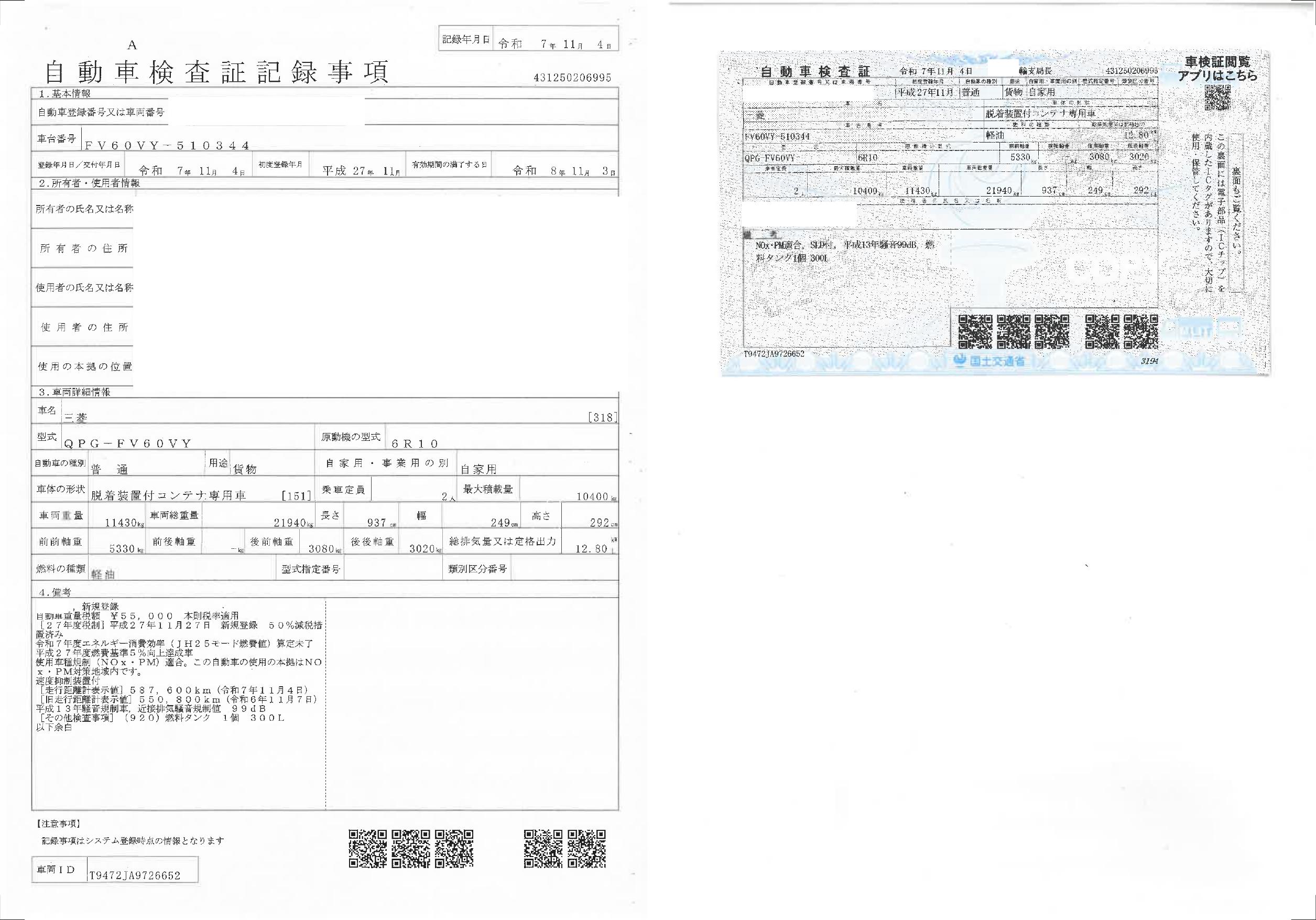 ※抹消車両は、登録時最大積載量が減トンされる可能性が御座います。