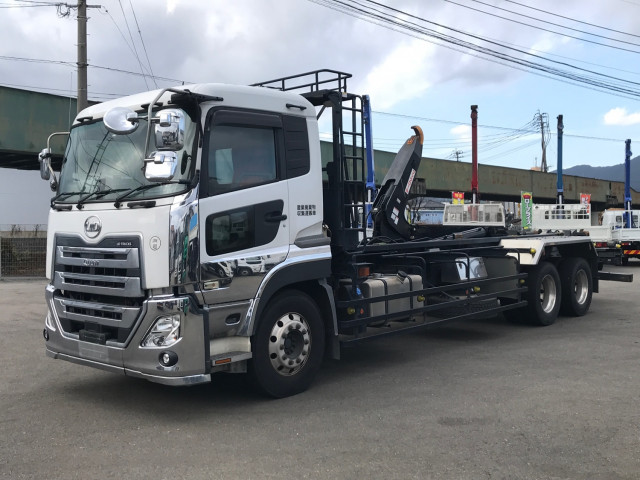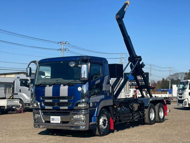 25トンアームロール、未使用車です♪新明和工業製です♪ キャブバックステップ ツインホイスト サイドガード、リヤフェンダー鉄 梯子右側 左側物入れ 8.5mモード切り替え式