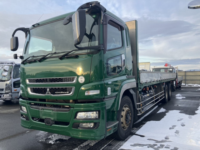 高床3軸1デフ デフロック付 380馬力 MT7の平ボディです。 荷台内寸L=9.50m W=2.38m H=0.33m 積載13,900㎏です。 床は板張り・一部鉄板張りでスタンション穴14対 床フック15対付です。 1デフですがデフロック付ですので雪道などの悪路でも運転しやすい車両となっております。 価格・詳細はお気軽にお問合せ下さい☆
