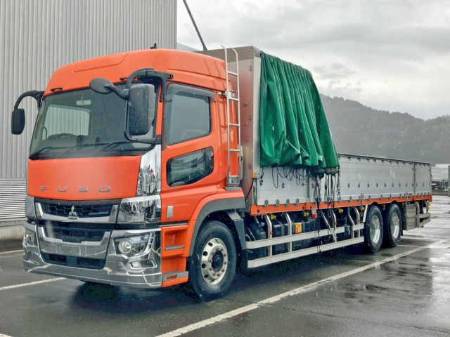 未使用・4軸低床・平ボディーが入荷いたしました。 ミッションはシフトパイロット・2ペダルでエンジンは394馬力・後輪エアサス仕様です。 荷台内寸は(L=9.45m、W=2.42m、H=0.68m)で積載量は14,400㎏としっかりととれております。 ボディーは人気の高い山田車体製で、アルミブロック・アルミホイール・キャブメッキ装着と見た目も良い一台です。 是非この機会にお問い合わせください!