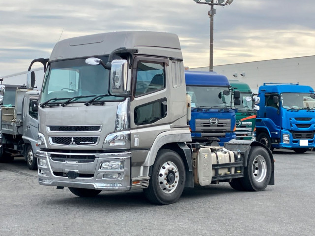 平成30年の三菱 1デフ トラクタです! 428PS・シフトパイロット・第五輪荷重11,500kgですのでシングル引きのトレーラに幅広く対応しております。 走行距離21万kmと、この年式のトラクタヘッドとしては低走行です。まだまだこれから長くお乗りになれますよ。 ハイルーフキャビンで長距離の運転も快適ですよ♪キャブにはメッキ、アルミホイールも履いており、見た目も煌びやかな車両です。ご不明な点がございましたらお気軽にお問い合わせください!