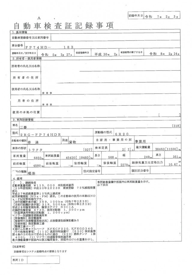 | 車検 | 抹消 |