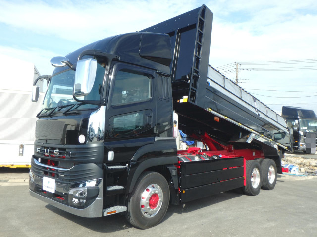 QKG-FV50VY 車検付 令和8年12月迄 H26 三菱ふそう スーパーグレート ロングダンプ 6×4 3軸2デフ 永久磁石式リターダ 新明和工業 650 230 電動コボレーン 380馬力 7速マニュアル MT 10t 22t 大型 土砂ダンプ