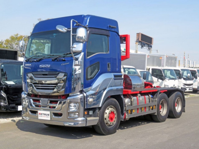 未使用車、AT、スーパーハイルーフ、E尺、第五輪荷重11,400kg、PTO付き、グレード/プレミアム、ベッド付き、ISRIシート、TCC、燃料タンク/アルミ、LEDリヤコンビランプ、メッキパーツ多数、ETC2.0、AW、エアシート、デジタコ、バックモニター