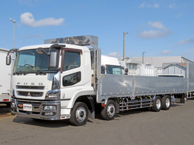 三菱 スーパーグレート 平ボディー ロング 積載13000Kg シフトパイロット12速 394PS 6R20 8×4 全低床 PS PW キーレス ETC2.0 ABS エアバック 未使用車 アドブルー Rエアサス 引出フック9対 LEDヘッドライト USB・AUX接続端子 Bluetooth ステアリングスイッチ スペアタイヤ Sリミッタ PMマフラ ターボ ベット オートAC 記録簿 保証書