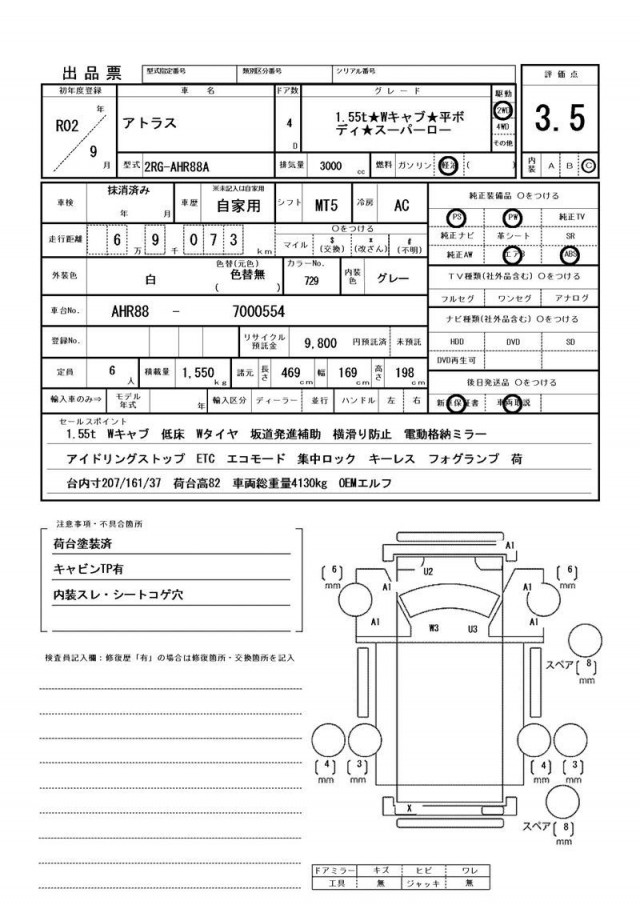 荷台塗装済 キャビンTP有 内装スレ・シートコゲ穴