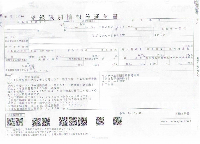 | 車検 | 抹消 |