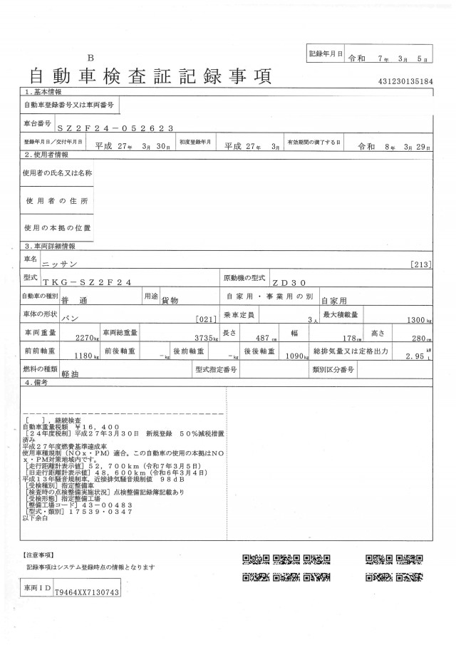 ★準中型(5t限定)免許対応!! ★車検付!!令和8年3月29日迄 ★実走行 ★2950cc(ターボ) ★3人乗り ★ミッション 6AMT(2ペダル) ★積載1300kg ★車両総重量3735kg ★標準ショート/10尺ボディ ★パネルバン/アルミバン ★上物 パブコ製 ★荷台内寸(約)長さ308cm×幅164cm×高さ198cm ★床面:板張り ★ラッシング1段